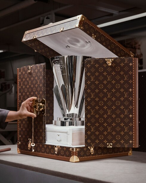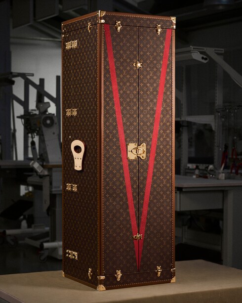 From the iconic Monogram motif to hand-painted blue and red lines representing both "Victory" and "Vuitton", the Trophy Trunks carry a common thread of savoir-faire and esteemed craftsmanship as totems of the Maison's sports history.