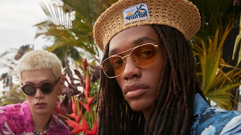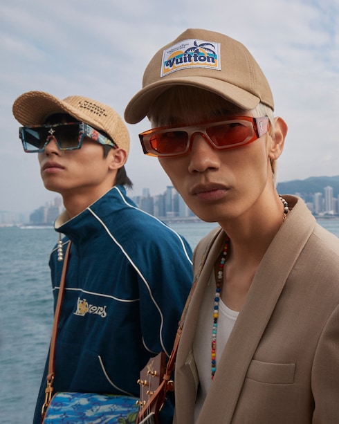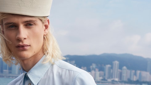 Staged under the stellar night sky at the waterfront Avenue of Stars, the scenography of Creative Director Pharrell Williams' new collection evokes the Maison's transcendent spirit of travel, transposing the shores of Hawaii to Hong Kong.