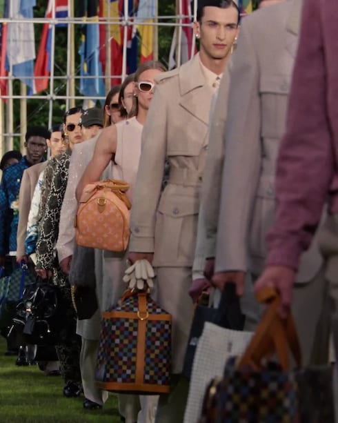 Pharrell Williams' signature dandy aesthetic is imbued with archetypal codes of travel, capturing the Maison's global mentality through distinct silhouettes. A reflection of human diversity, emblematic motifs morph into dynamic configurations — adorning iconic bags and accessories.