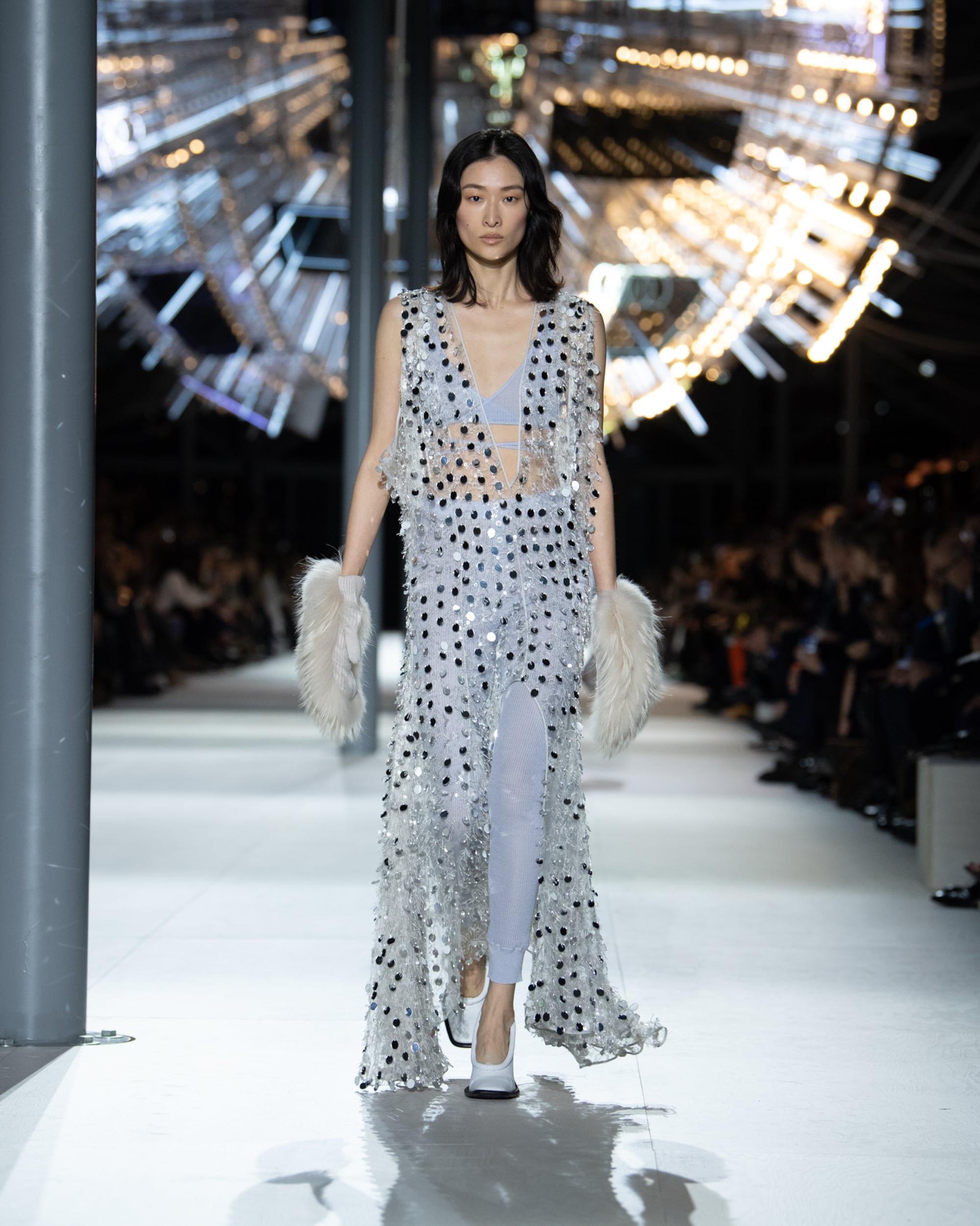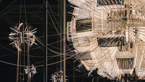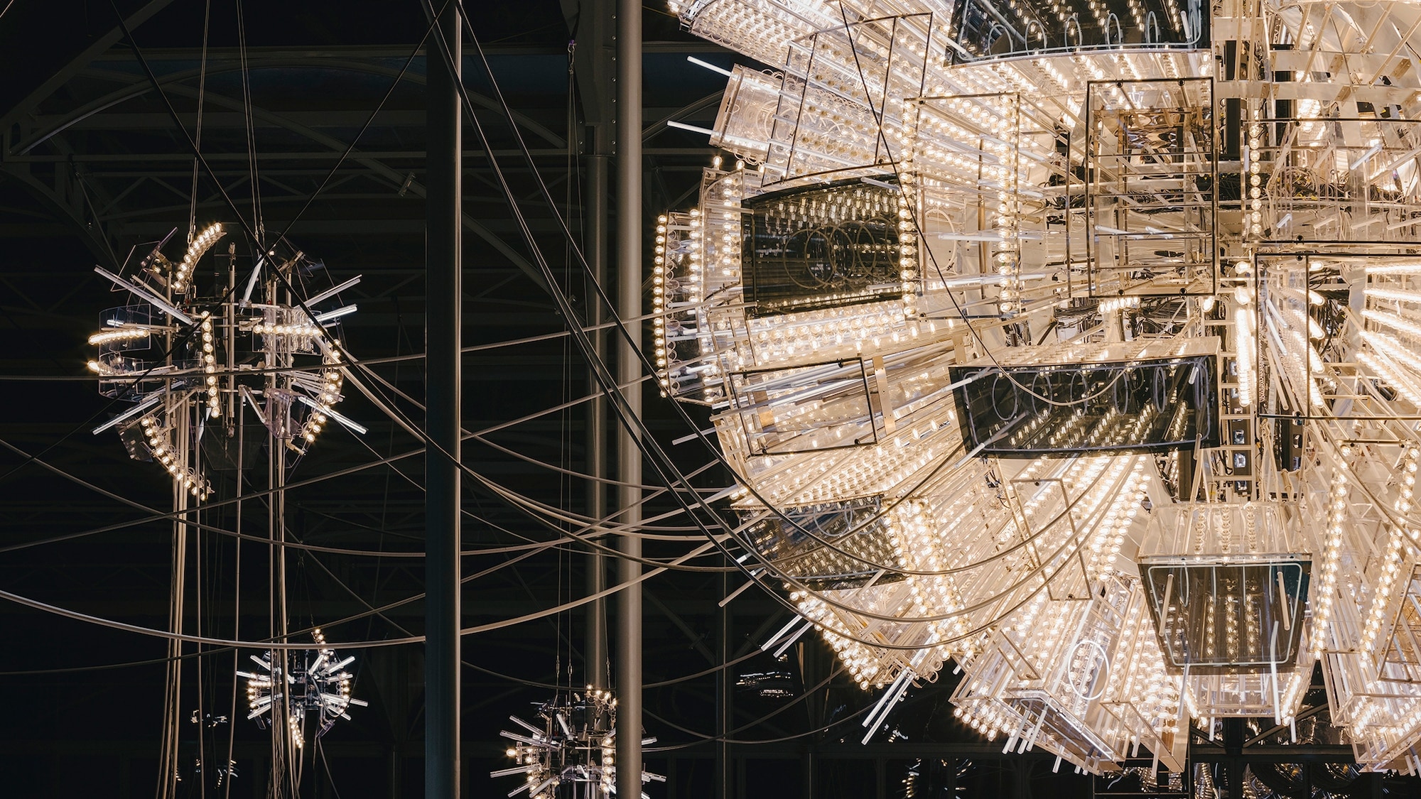 Reminiscent of a luminous glasshouse imbued with the pulsating energy of sculptural chandeliers, the futuristic scenography was designed once again by renowned artist Philippe Parreno and production designer James Chinlund.