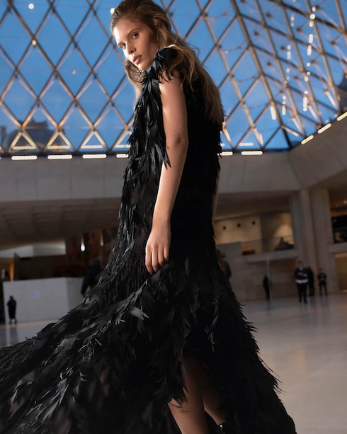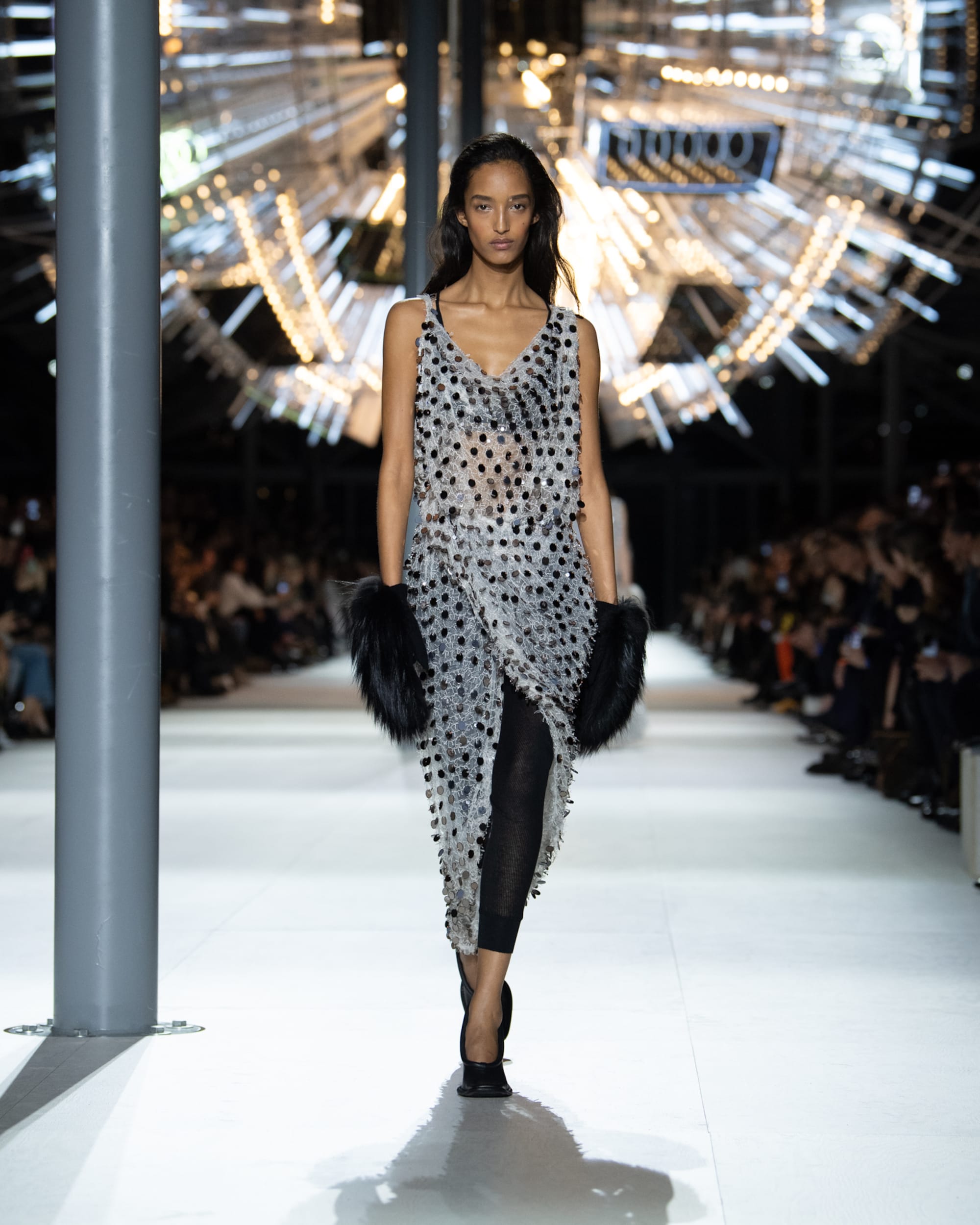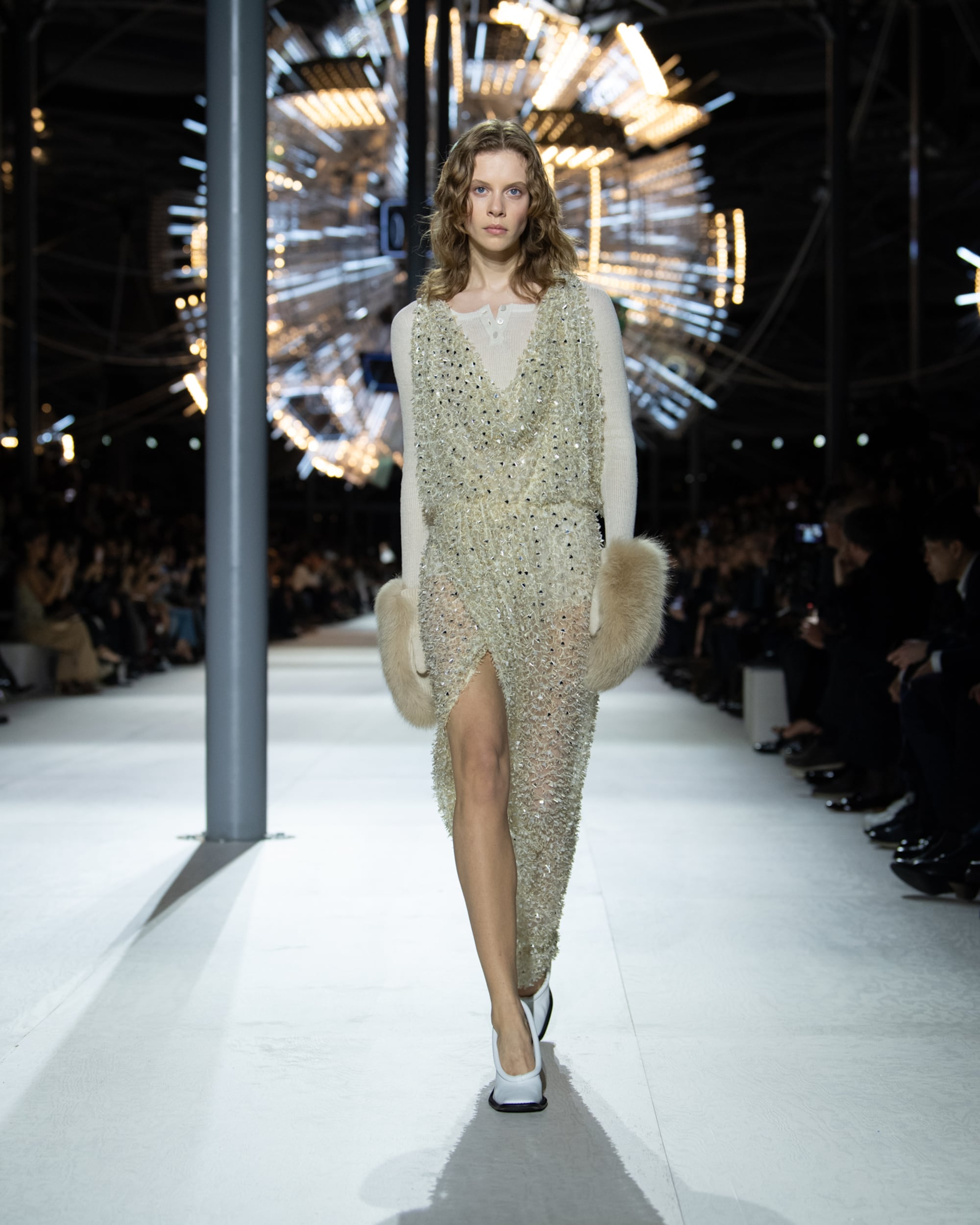 Evoking a sense of nostalgia through his signature style codes, Nicolas Ghesquière weaves a new story with his latest collection, affirming the bold allure of the contemporary feminine silhouette.