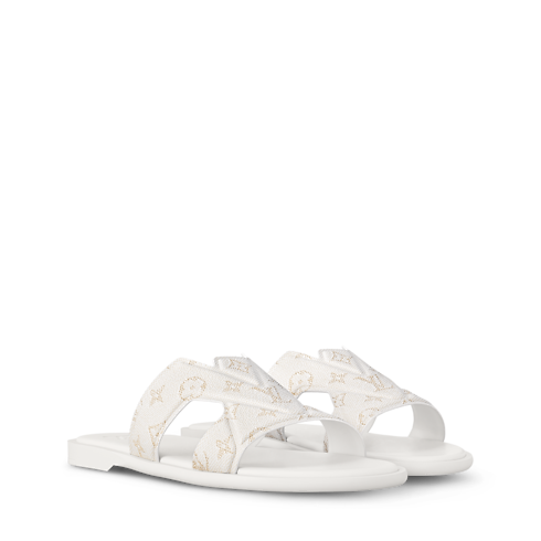 The sandals collection offers a selection of color options, as well as signature monogram and Damier graphic treatments, catering to discerning sartorial preferences.