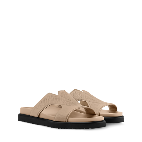 The sandals collection offers a selection of color options, as well as signature monogram and Damier graphic treatments, catering to discerning sartorial preferences.