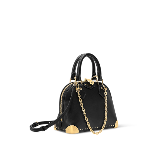 This edition of the Alma Trunk BB, is offered in a timeless smooth calfskin. It is defined by its gleaming gold-toned hardware, from the signature padlock to the trunk-inspired corners and decorative chain. Elegant and functional, it is sized to fit daily essentials and includes a flat pocket to keep a cardholder or smaller items secure.
