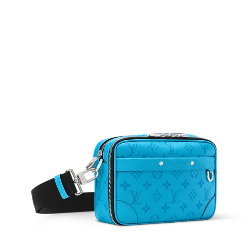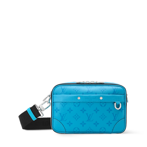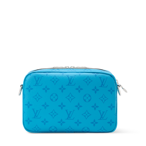 Sized like a vintage camera bag, the Alpha Messenger is crafted from colored Monogram coated canvas and Taigarama cowhide leather. Its understated tone-on-tone Monogram and wide black detachable strap lend a contemporary edge. Two zipped compartments secure essentials, while rivets and reinforced corners evoke the House’s trunkmaking legacy.