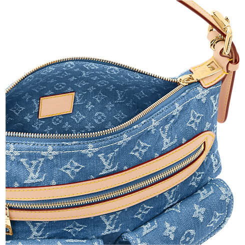 The Denim Rendez-Vous collection presents this limited-edition version of the Baggy NM, which is defined by the playful charm on the zipper pull. Offered in classic Blue Denim, it is trimmed with contrasting leather and adorned with gold-toned hardware, including a tuck lock on each front pocket. Ideal for weekends in the city, it is sized to fit all the essentials, plus a favorite lipstick..