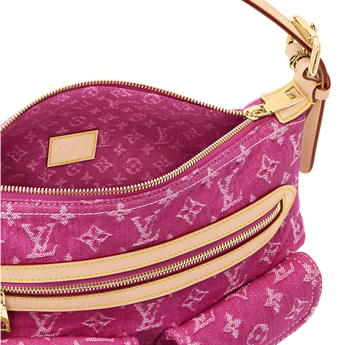 The Denim Rendez-Vous collection presents this limited-edition of the Baggy NM, which is defined by the playful charm on the zipper pull. Offered in vibrant Fuchsia Denim, it is trimmed with contrasting leather and adorned with gold-toned hardware, including a tuck lock on each front pocket. Ideal for weekends in the city, it is sized to fit all the essentials, plus a favorite lipstick.