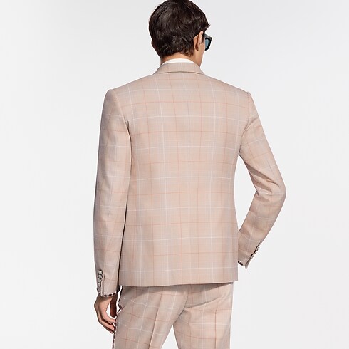 These flared pants from the Spring-Summer 2026 runway exemplify this season’s Indian Dandy aesthetic. Tailored from a fine wool glen check in elegant camel tones, they are adorned with embroidered beads resembling jewelry along the outer seam of each leg, while tone-on-tone Louis Vuitton Paris lettering discreetly signs the back. A matching jacket makes a standout suit.