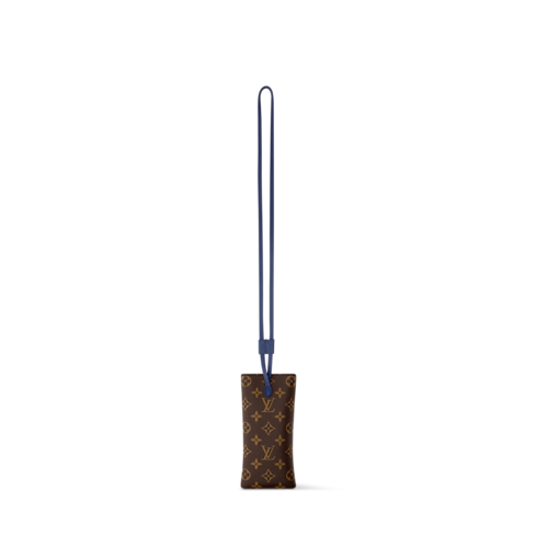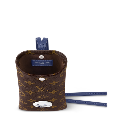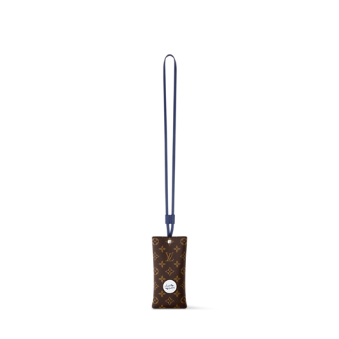 The Camille sunglasses pouch transforms the standard case into a covetable item to be carried out in the open, courtesy of a chic, blue leather strap. The outside is covered in the warmly hued Monogram coated canvas, and a microfiber interior protects the lenses. Adding sporty appeal is the golf collection emblem.