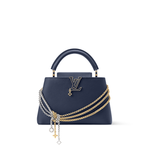 Part of the Why Knot collection, this Capucines BB is updated in a timeless Navy colorway, which beautifully contrasts the mixed-metal hardware. It is made from Taurillon leather and features a decorative chain, as well as tonal LV Initials that pay tribute to the House’s savoir-faire. The double-carry style is capacious enough to store two smartphones - ideal for commuting into the city.