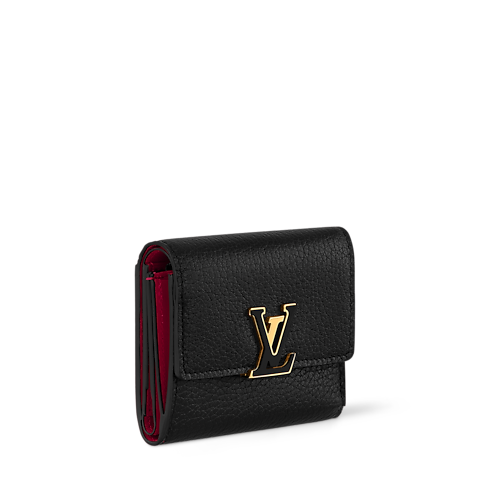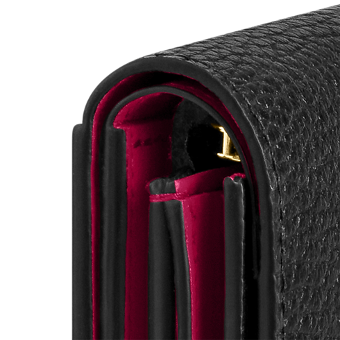 The Capucines XS wallet slips easily into any Capucines handbag – even the compact BB model. Crafted from full-grain Taurillon leather and lined with smooth calfskin, this extra-small format is ingeniously constructed to accommodate a woman’s daily essentials, from bills and coins to cards and receipts. The press-stud closure is signed with the iconic leather-covered LV.