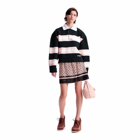 An understated update on a classic design, this polo top is made from interlock cotton jersey in a boxy oversized fit. Chunky horizontal stripes nod to graphic sporty styles, complete with a contrasting ribbed collar and hidden button fastening at the neckline. A Louis Vuitton scarf tag completes the look with a bold signature finish.