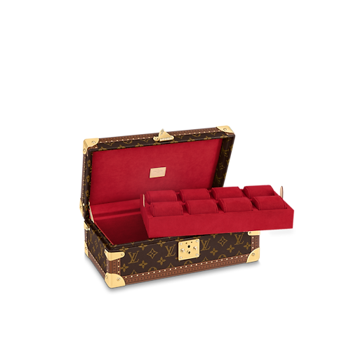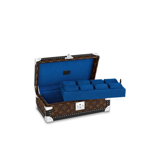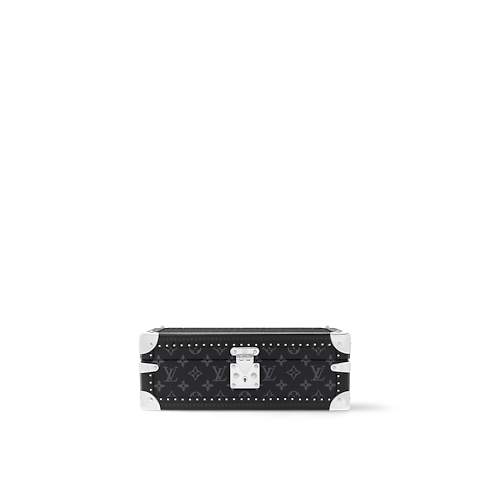 This 8 watch case is crafted in classic Damier Garphite canvas. It easily goes from safe to suitcase and has a removable tray to hide other valuables.