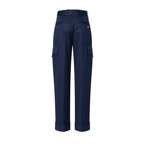 These timeless cargo pants from the Louis Vuitton 37th Americas Cup collection feature a discreet Damier on the side pockets and turnups. ‘Marque L.Vuitton déposée’ signatures grace both the Damier and the embroidered pocket tabs. An embroidered tricolor Gaston on a rear pocket adds a sporty final touch to this go-to summer essential.