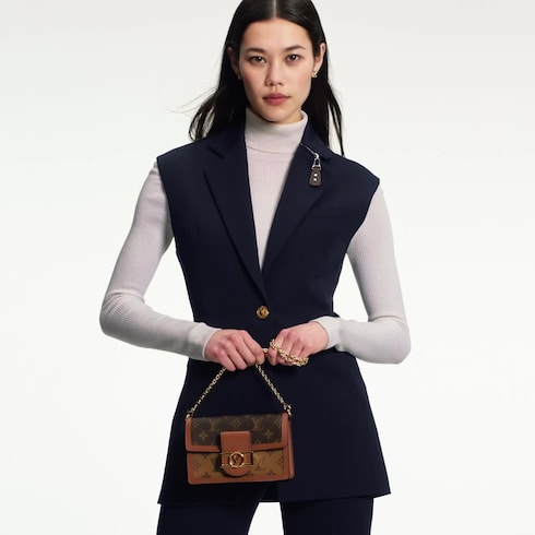 Combining Monogram and Monogram Reverse canvas, the Dauphine Chain Wallet reprises all the signatures of the iconic Dauphine collection: the vintage look, the calf-leather trim and the LV Circle clasp. This neat yet spacious wallet features a removable gold-tone chain, enabling it to be carried in several different ways.