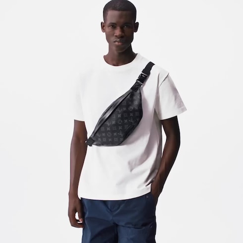 Crafted from Monogram Eclipse canvas, the Discovery bumbag offers the ideal mix of casual chic and modern functionality. With a body-friendly shape and adjustable belt, it can be worn around the waist, over the shoulder or slung stylishly across the chest. Zipped pockets, front and back, provide easy access to phone, cards and keys.