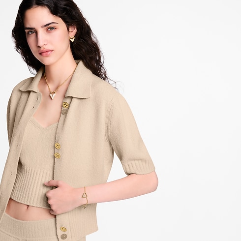 The enchanting design of the Essential Love bracelet is an elegant tribute to the magic of romance. Its delicate gold-toned chain culminates in a heart-shaped charm integrating the House’s iconic V emblem, heightened with resplendent rhinestones. A subtle way to wear the Louis Vuitton signature, and a precious expression of love and affection.
