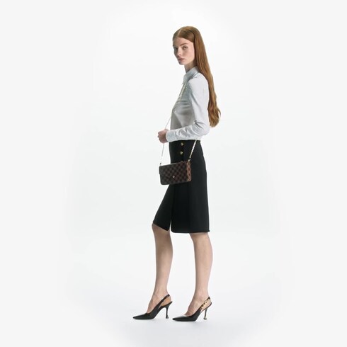 With its spacious inside compartment and two removable pockets, the Pochette Félicie in Louis Vuitton's historic Damier Ebene canvas is the stylish way to carry and organize daily essentials. Much more than a wallet, this versatile pouch can be transformed into a shoulder bag or clutch thanks to its removable gold-color chain.