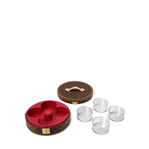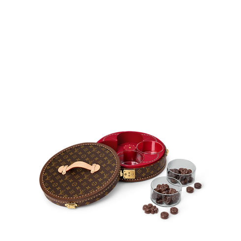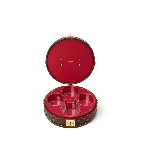 Inspired by Asian candy boxes, the Festivity Box is crafted from Monogram canvas with golden brass hardware and a sturdy leather handle. It opens to reveal four removable glass containers – perfect for nuts, candies, or other treats – nestled in a vibrant red lining. More than a box, it’s an invitation to create shared moments of pure delight.