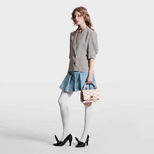 This elegant edition of the GO-14 MM Malletage handbag is introduced for the Spring-Summer 2024 women’s fashion show collection. The heritage crisscross pattern, borrowed from the Maison’s historic trunks, is created with meticulous stitching on a background of soft, luxurious lambskin. A polished golden LV Twist lock adds a refined signature to the piece.