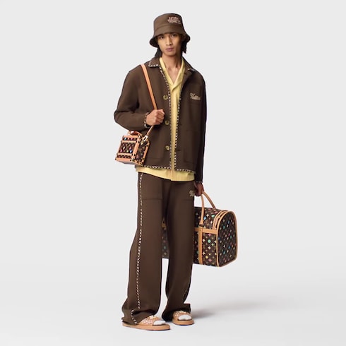 Tyler’s Monogram Craggy canvas brings a playful feel to the Handle Trunk. The Monogram has been reworked in a hand-drawn style and the pattern enriched with cute little daisies and dogs.