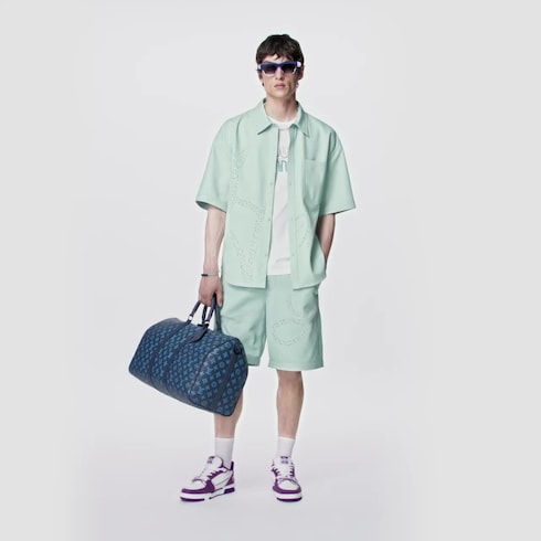 Fashioned from non-glossy calf leather with an embossed Monogram pattern, the Keepall Bandoulière 50 bag takes on a masculine, sporty allure. Small enough for carry-on, the Keepall is large enough to hold everything needed for most short trips. The top handles and removable and adjustable shoulder strap give carry options.