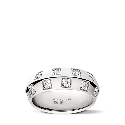 Le Damier de Louis Vuitton Large Ring, White Gold and Diamonds
