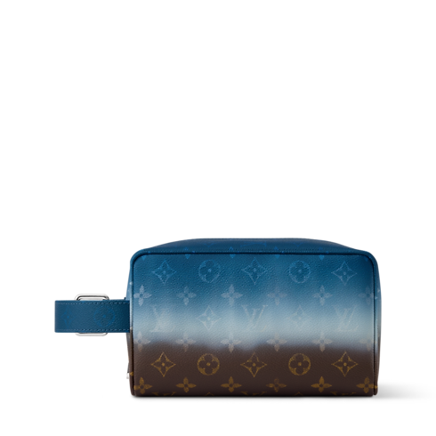 The Locker Dopp Kit is crafted from Monogram Pigment coated canvas, featuring a striking gradient Monogram Ebene motif. The technical printing process creates a vivid, layered effect. Colored leather piping and handle anchor the design, while a robust central zipper and spacious interior make it a standout choice for grooming essentials.