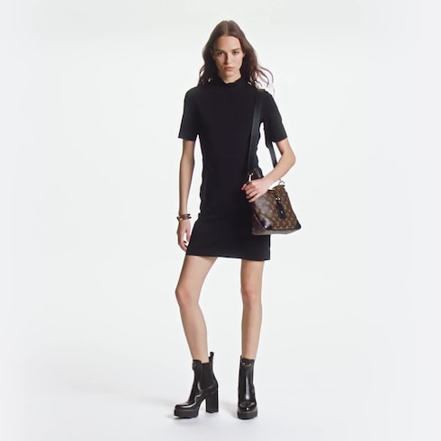 The LV Beaubourg platform ankle boot is revisited in calf leather with a high heel and a chunky platform. Elastic side panels in the style of a Chelsea boot make it easy to slip on and off. The design is complemented by edging and a back loop in Monogram canvas, while the heel is embellished with an LV Initials stud.