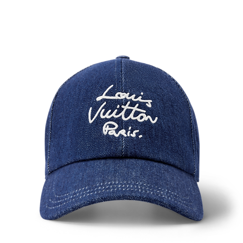 Crafted in cotton with a timeless denim look, the LV Script cap emanates sporty, laid-back elegance. Its crown is adorned with a Louis Vuitton Paris signature in a fluid hand-written style for an original House touch. This versatile, easy-to-wear cap is sure to become a go-to essential for every spring wardrobe.