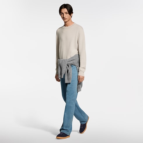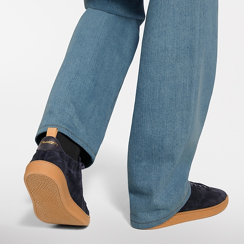 The LV Soft sneaker comes in supple suede calfskin with trim in the House's emblematic natural leather. In addition to laces, it features an elasticized heel for an easy, slip-on fit, and a sacchetto construction for lightness and comfort. It bears the LV Initials on the side and a Pharrell Williams-designed Vuitton signature at the back.