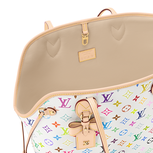 Made from the classic Monogram Multicolore canvas imagined by Takashi Murakami in 2003, the Neverwoof MM brings pet carrier functionality to the iconic Neverfull carryall. Sized to fit a small dog in its padded interior, this bag boasts an internal leash, as well as a removable and washable soft mat.