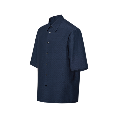 This navy shirt brings effortless elegance to a summery wardrobe. The breezy silhouette with an open collar is distinguished with a light silk blend seersucker incorporating an embossed allover mini Monogram motif. This easy piece is perfect for completing summery day-to-evening looks.
