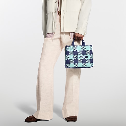 This Mini Shopper Tote showcases a distinctive Damier checkerboard pattern, meticulously woven from a blend of virgin and upcycled cowhide. The front is embroidered with LOUIS VUITTON lettering, crafted from repurposed leather scraps, while Pharrell Williams’ signature “Marque L. Vuitton déposée” is printed on both sides, a nod to the House’s history.