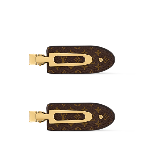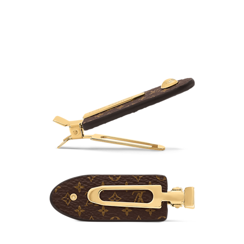 Combining sophisticated style with functional design, the MNG flat clips bring a subtle touch of Louis Vuitton flair to any hairstyle. Crafted in metal adorned with the iconic Monogram pattern, each clip is accented with a gold-colored stud. A House signature on the metal blade adds a final flourish to these elegant, practical accessories.