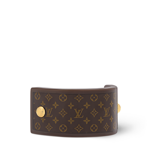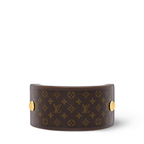 The MNG Resin pony cuff is the ideal way to keep a ponytail in place with eye-catching signature style. Crafted in resin, it features the Monogram pattern heightened by two gold-toned metal studs recalling the rivets on vintage Louis Vuitton trunks. Perfect for everyday wear, this stylish, practical accessory elevates any look with a subtle House touch.