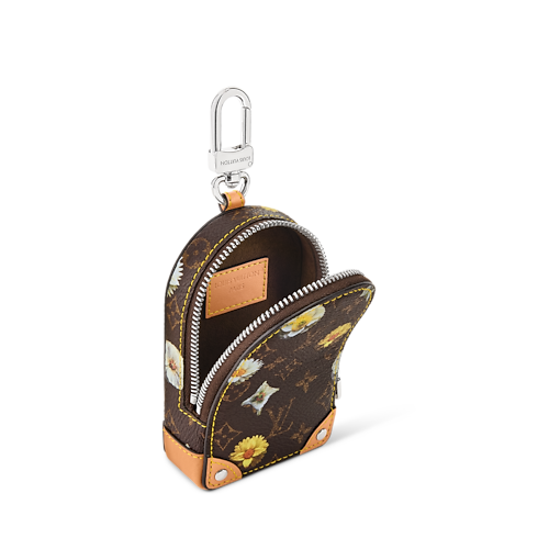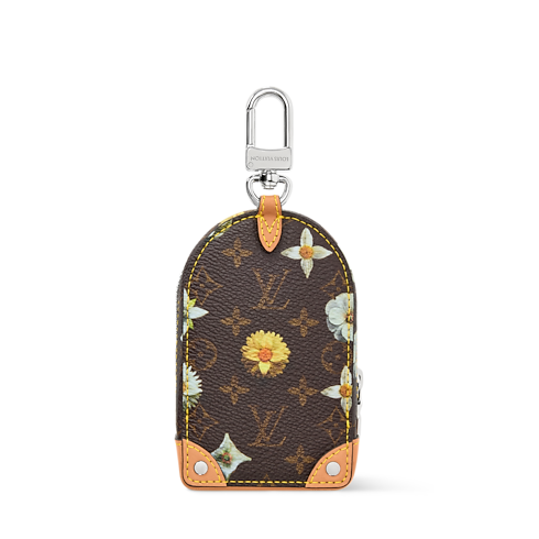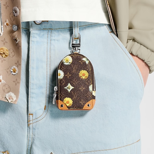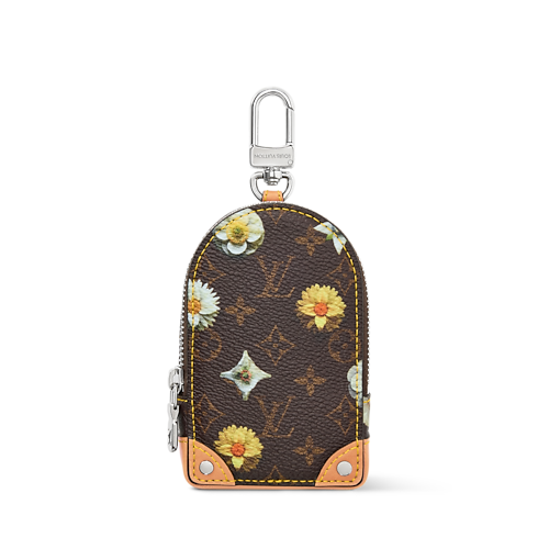 The Monogram Flower pouch is a perfectly sized companion to attach to any bag or belt loop. The zippered case holds keys, credit cards, or a pair of wireless earphones. The floral pattern reinterpreting the transversal animation of the Spring Capsule, adds contemporary flair to the functional piece, while leather corners with silver-toned rivets evoke the construction of Louis Vuitton trunks.