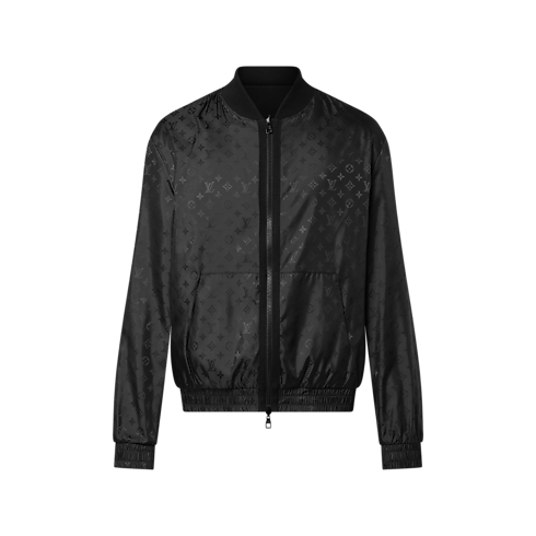 This lightweight reversible bomber is a mid-season essential. It has a shiny technical fabric featuring the Monogram motif on one side and compact cotton knit on the other. The collar is ribbed, while Monogram fabric covers the bottom hem and cuffs. It has a zipped double puller closure with knitted trim on the Monogram side. An embroidered LV on one kangaroo pocket completes this piece.