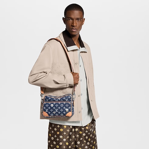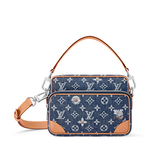 This season, Monogram Denim is enriched with intricate floral embroidery, merging rugged texture with delicate design for a fresh take on the Nil cross-body bag. The retro-inspired silhouette includes a main compartment with an inside flat pocket and a zipped pocket on the front. The removable leather handle and shoulder strap give multiple carry options.