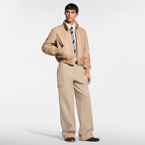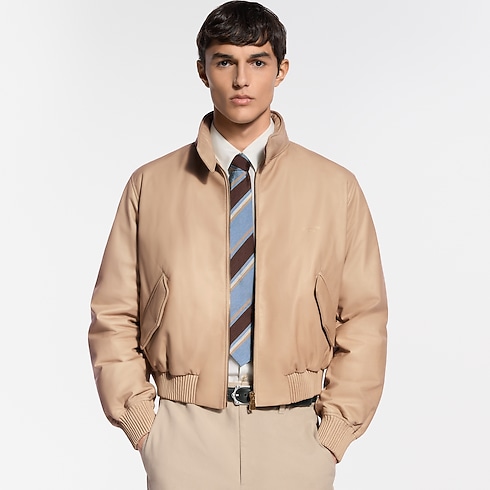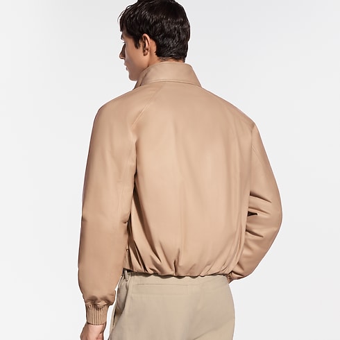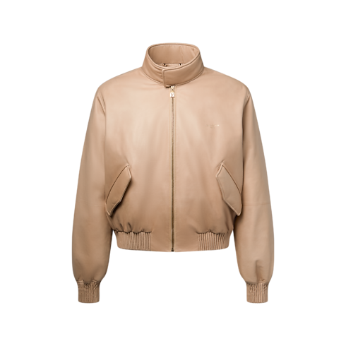 Crafted in fine and supple calfskin, this blouson from the Spring-Summer 2026 show is lightly padded for a softly rounded shape. It has a modern cropped fit with ribbed leather on the cuffs and waist, while gold-stamped Louis Vuitton Paris lettering adorns the chest. The naturally tanned pale camel color makes this a timelessly versatile piece.