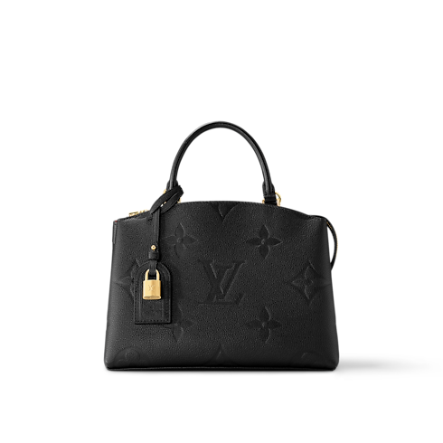 The perfect everyday companion, the smart and sophisticated Petit Palais handbag is fashioned from grained leather with an oversized pattern of Monogram Flowers and LVs printed and embossed on it. The gold-color padlock and leather name tag bring to mind the House’s legacy of fine luggage. A detachable strap can be adjusted for comfortable shoulder and cross-body wear.