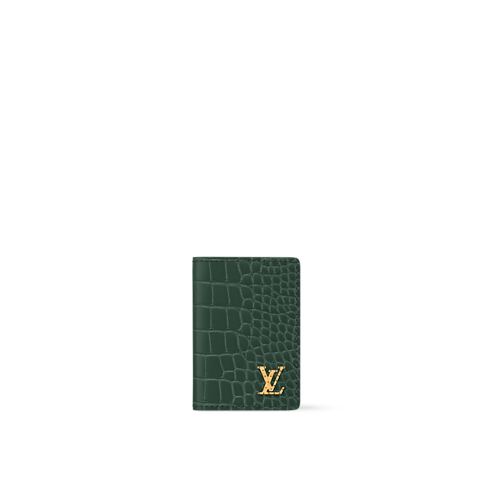 The Pocket Organizer compact wallet is made from crocodilian leather so soft and supple that Pharrell Williams named it “Butter Crocodile.” Vibrant color and textured scales pair with aged-gold-tone LV Initials, detailed with tiny studs. Compact enough for any pocket, this wallet is a refined and dependable everyday companion.