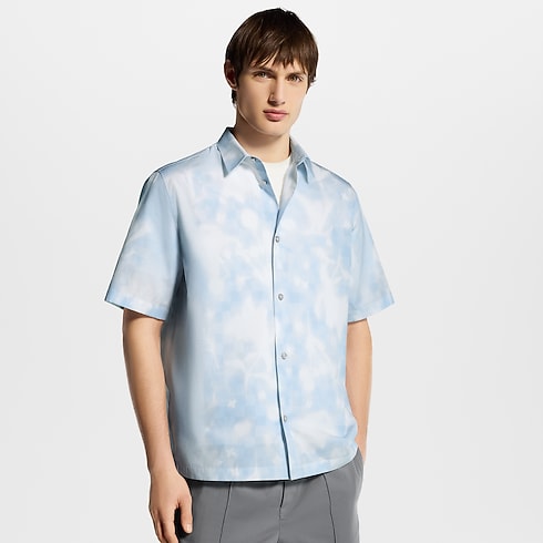 This fresh and breezy short-sleeved shirt is crafted from light cotton with a printed LV Flower X-Ray motif in pale blue and white tones. Printed over a Damier base, the graphic floral motif incorporates discreet LV and Monogram Flower signatures. This signature piece can be layered under a collarless jacket in the same motif.