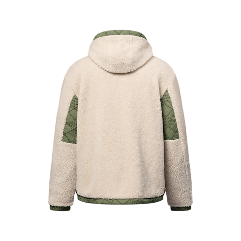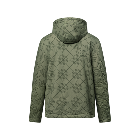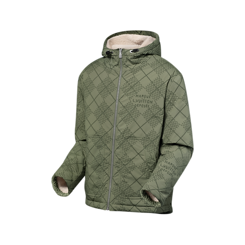 This wintery interpretation of the windbreaker has a contemporary reversible design. The technical fabric on the outside is adorned with a graphic green Damier Argyle diamond plaid incorporating Marque L.Vuitton Déposée signatures. Inside out, it becomes a cosy cream-colored fleece with a delicately embroidered cursive Louis Vuitton signature on the chest. Perfect for the midseason, this versatile design can be worn on cold or rainy days.