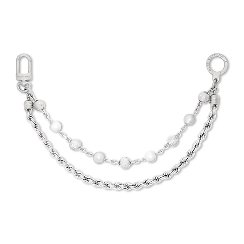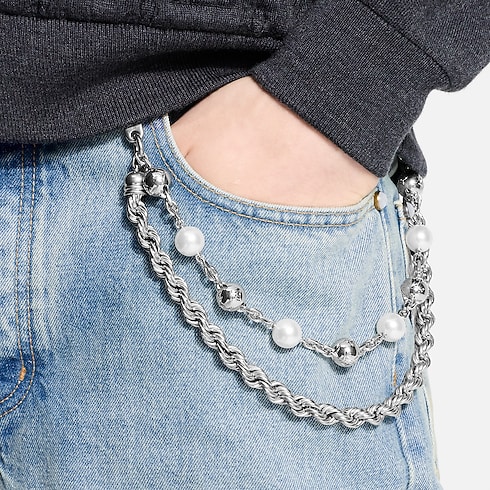The Rockabilly chain belt is the perfect accessory to add a sophisticated touch to any look! At once soft and edgy, a strand of white and grey pearls accompany a chain of palladium-toned links. An LV Flower signature hangs from the end, and the belt can also be reinvented as a bag charm.