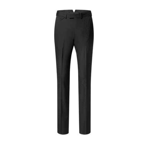 These sleek, black cigarette pants are richly embellished with this collection’s LV Cheetah motif. Interpreted as a rich satin jacquard made from responsibly-sourced wool, the graphic feline pattern integrates discreet Monogram signatures in a rich interplay of matte and lustrous textures. A matching jacket makes a sharp evening suit that stands out from the crowd.