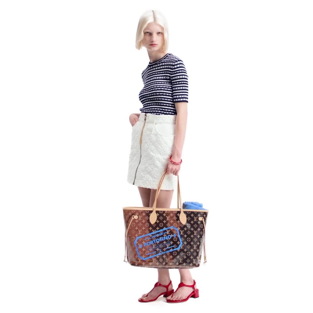 This fitted knit top has a fresh, modern spirit in a flexible wool blend in a scalloped stripe motif that is subtly accented with Monogram Flowers. The waistline and short sleeves are finished with playful scalloped edges, while a signature tab adds a final House touch to the left side.