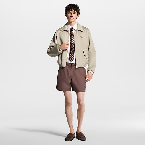 These dark brown swim shorts in technical ripstop fabric bring an elegant mood to the pool. Their minimalist silhouette is adorned with a silicone Damier Heritage patch incorporating 3D LV lettering on the left leg. With their Italian pockets and a zipper fastening, these shorts can also be styled out of the water with casual and sporty separates.
