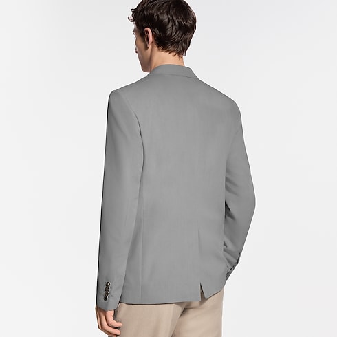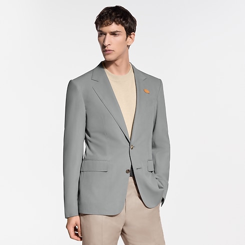 This single-breasted Gaston jacket is tailored from luxurious silk-wool canvas in pale heathered gray tones. Perfect for warmer midseason weather, it is cut with a straighter silhouette offering elegance and comfort. Pick stitching adds a discreet sartorial accent while a VVN leather tab signs the lapel. Matching pants make an effortlessly refined suit.