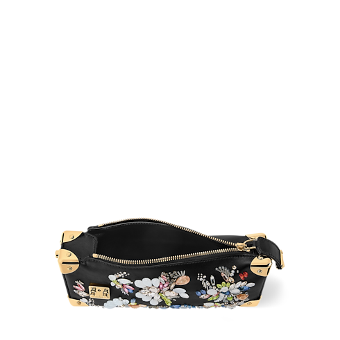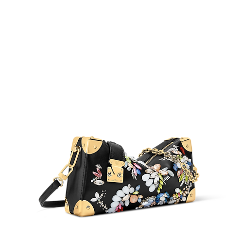 The Eden Embroideries collection presents this striking edition of the Slim Trunk, which is adorned with multicolor gems and crystals. Made from calfskin in classic Black, it is trimmed with cowhide and elevated with gold-toned trunk corners and a signature S-lock and chain. An elegant choice for evening occasions, it can be styled with or without the longer strap.